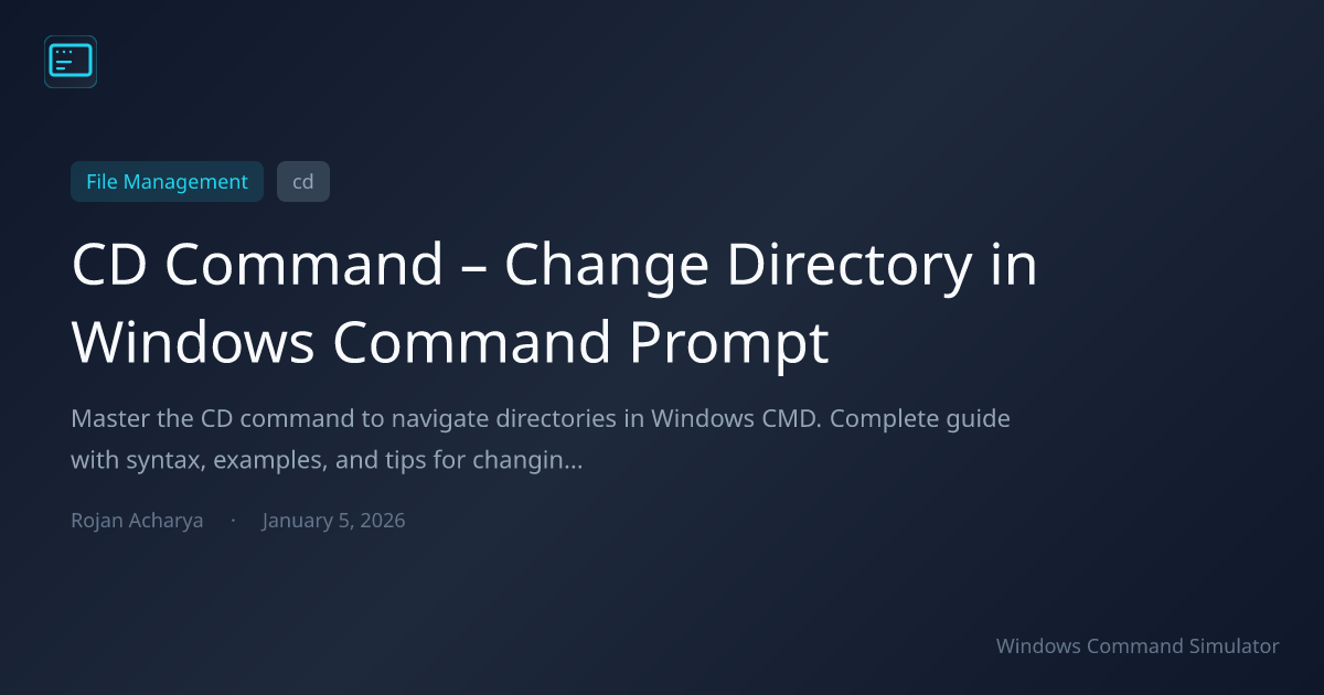 Master the CD command to navigate directories in Windows CMD. Complete guide with syntax, examples, and tips for changing directories efficiently in Command Prompt.