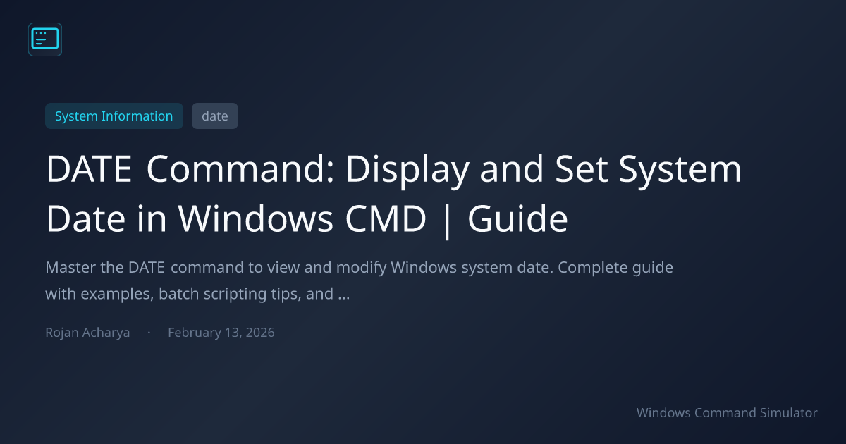 Master the DATE command to view and modify Windows system date. Complete guide with examples, batch scripting tips, and date manipulation techniques.