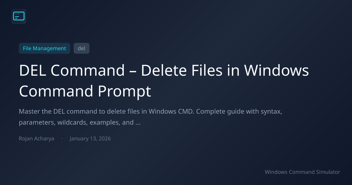 Master the DEL command to delete files in Windows CMD. Complete guide with syntax, parameters, wildcards, examples, and best practices for safe file deletion.