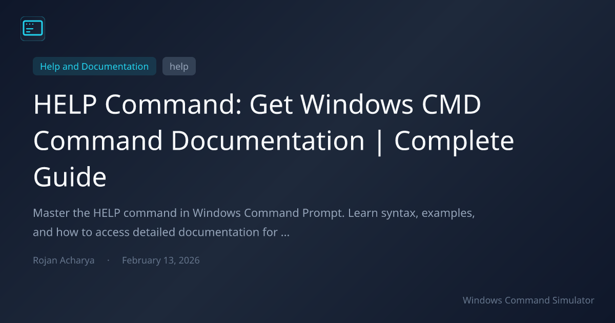 Master the HELP command in Windows Command Prompt. Learn syntax, examples, and how to access detailed documentation for any CMD command instantly.