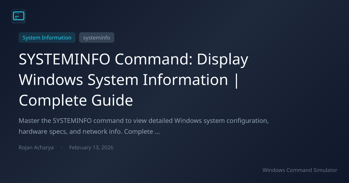 Master the SYSTEMINFO command to view detailed Windows system configuration, hardware specs, and network info. Complete guide with examples and troubleshooting.