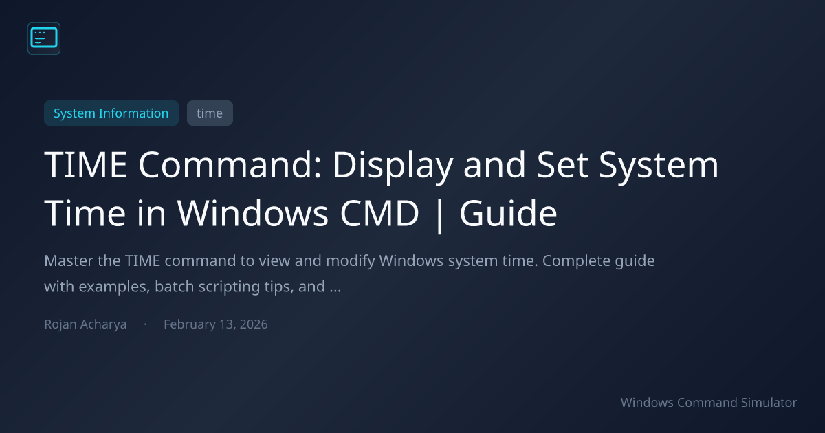 Master the TIME command to view and modify Windows system time. Complete guide with examples, batch scripting tips, and time management techniques.