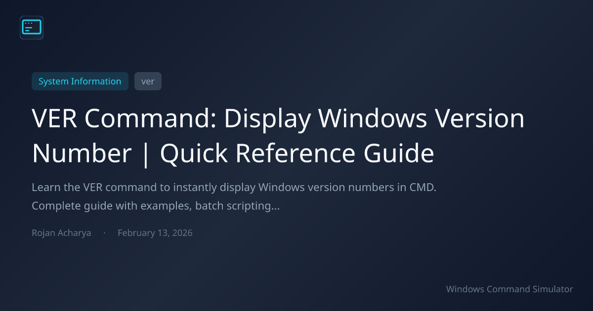 Learn the VER command to instantly display Windows version numbers in CMD. Complete guide with examples, batch scripting tips, and version checking techniques.