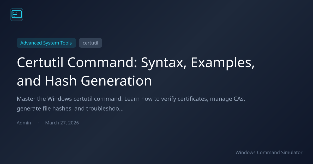 Master the Windows certutil command. Learn how to verify certificates, manage CAs, generate file hashes, and troubleshoot common issues in this complete 2026 guide.