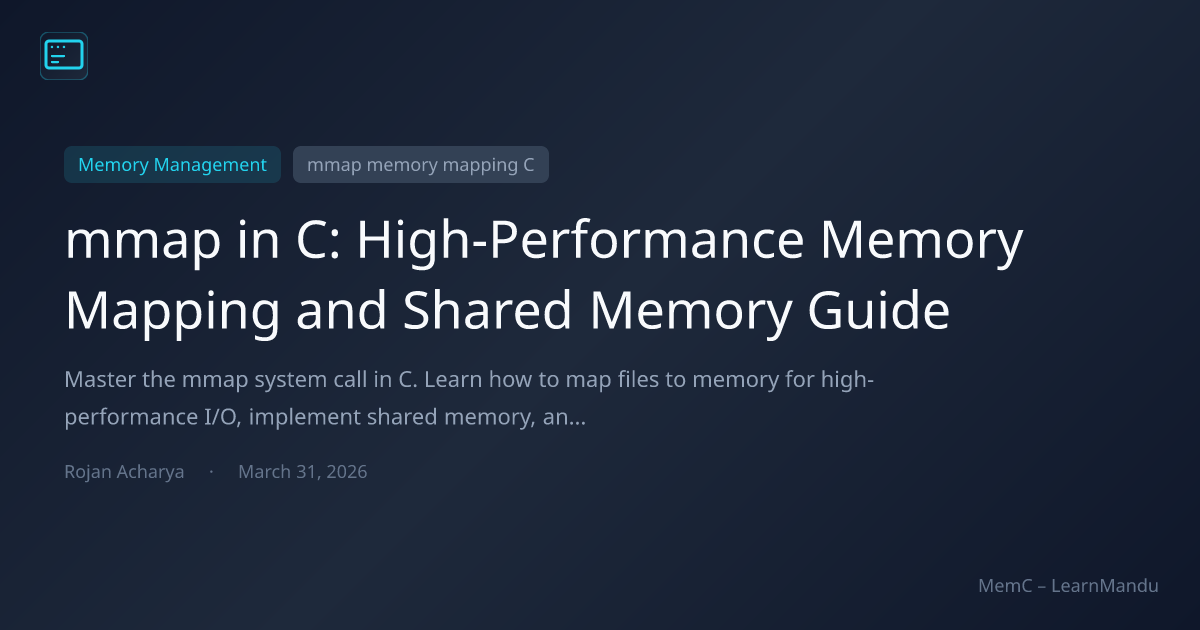 This comprehensive guide explores the mmap system call in detail—from basic file mapping and anonymous memory allocation to shared memory IPC (Inter-Process Communication) and performance tuning. Whether you are building a high-performance database or a simple file processor, mastering mmap is essential for modern system-level C programming.
