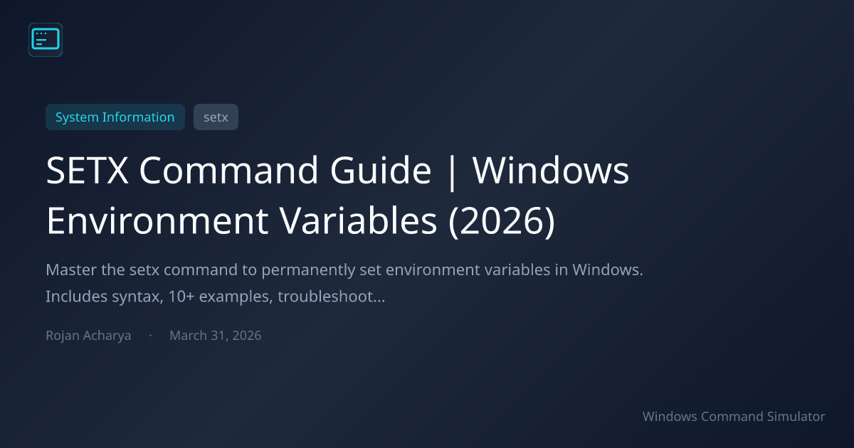 In this comprehensive 2026 guide, we will explore everything you need to know about the setx command, including its syntax, key parameters, detailed practical examples, common troubleshooting tips, and advanced enterprise use cases. By the end of this article, you'll be able to manage environment variables from the command line with confidence and precision.
