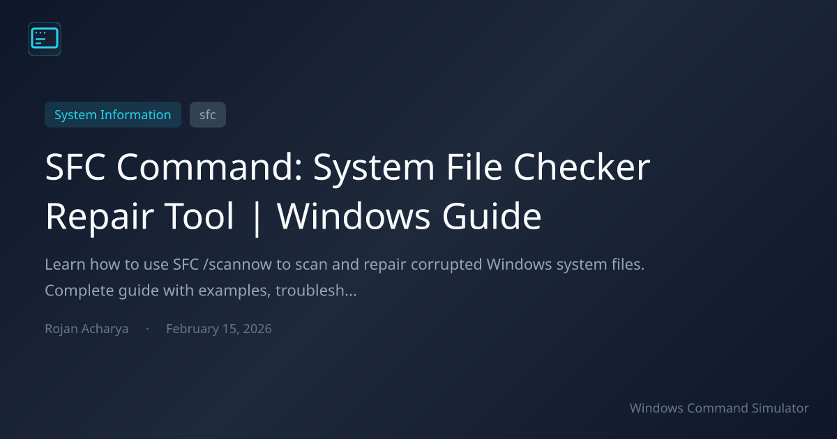 Ready to practice SFC and other system diagnostic commands in a risk-free environment? Use our interactive Windows Command Simulator to experiment with system maintenance commands without affecting your actual system. Perfect for learning command syntax and understanding output before running on production machines.