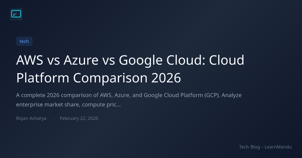 A complete 2026 comparison of AWS, Azure, and Google Cloud Platform (GCP). Analyze enterprise market share, compute pricing, AI/ML services, and which cloud provider to choose.
