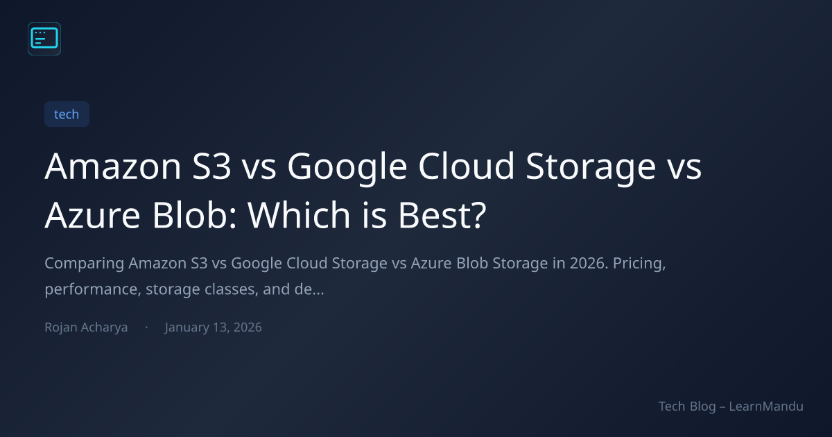 Comparing Amazon S3 vs Google Cloud Storage vs Azure Blob Storage in 2026. Pricing, performance, storage classes, and developer experience for cloud object storage.