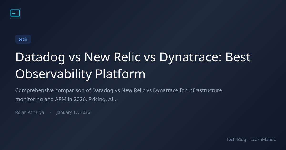 The Datadog vs New Relic vs Dynatrace observability platform comparison is the most impactful infrastructure tooling decision for DevOps and SRE teams in 2026. All three are full-stack observability platforms providing Application Performance Monitoring (APM), infrastructure metrics, distributed tracing, log management, and synthetic monitoring in a unified interface. The differences lie in their AI anomaly detection maturity, pricing model transparency, auto-discovery depth, and enterprise integration breadth — factors that matter enormously at scale.