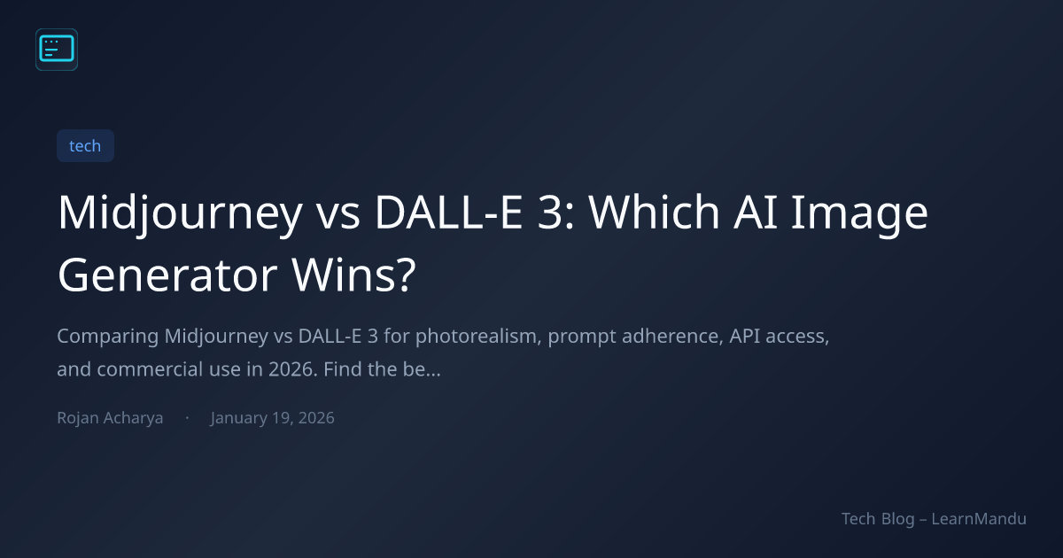 Comparing Midjourney vs DALL-E 3 for photorealism, prompt adherence, API access, and commercial use in 2026. Find the best AI image generator for your workflow.