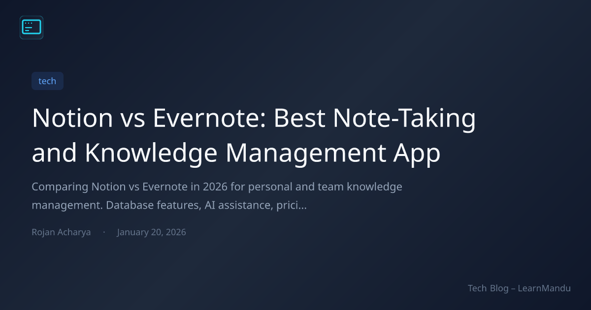 The Notion vs Evernote comparison in 2026 reflects two fundamentally different philosophies of knowledge management: Notion as a deeply structured, database-first connected workspace versus Evernote as a mature, straightforward note capture and retrieval system. Evernote pioneered the digital notebook concept and remains the most capable pure note-taking app — with unmatched OCR search in scanned documents, web clipper maturity, and offline access. Notion is not just a note app; it is a modular connected workspace that combines notes, databases, project management, and wikis in powerful combinations that Evernote's linear notebook paradigm cannot replicate.