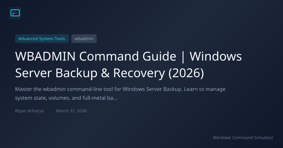 wbadminWBADMIN Command Guide | Windows Server Backup & Recovery (2026)